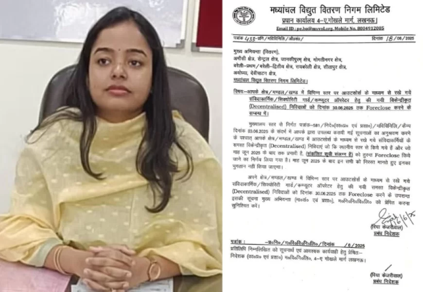 लखनऊ: मध्यांचल विद्युत वितरण निगम लिमिटेड (MVVNL) ने आउटसोर्स आधार पर कार्यरत संविदा कर्मचारियों, कंप्यूटर ऑपरेटरों और सुरक्षा गार्डों की सेवाएं 30 जून 2025 के बाद समाप्त करने का आदेश जारी किया है। यानी 1 जुलाई से इन कर्मचारियों को कोई वेतन नहीं मिलेगा और उनकी सेवा मान्य नहीं मानी जाएगी।