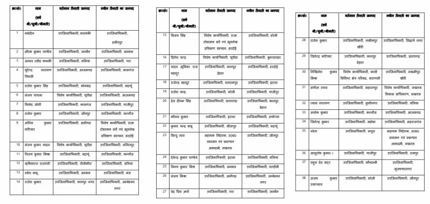 यूपी में 127 पीसीएस अधिकारियों के तबादले, कई एसडीएम को मिले नए जिले